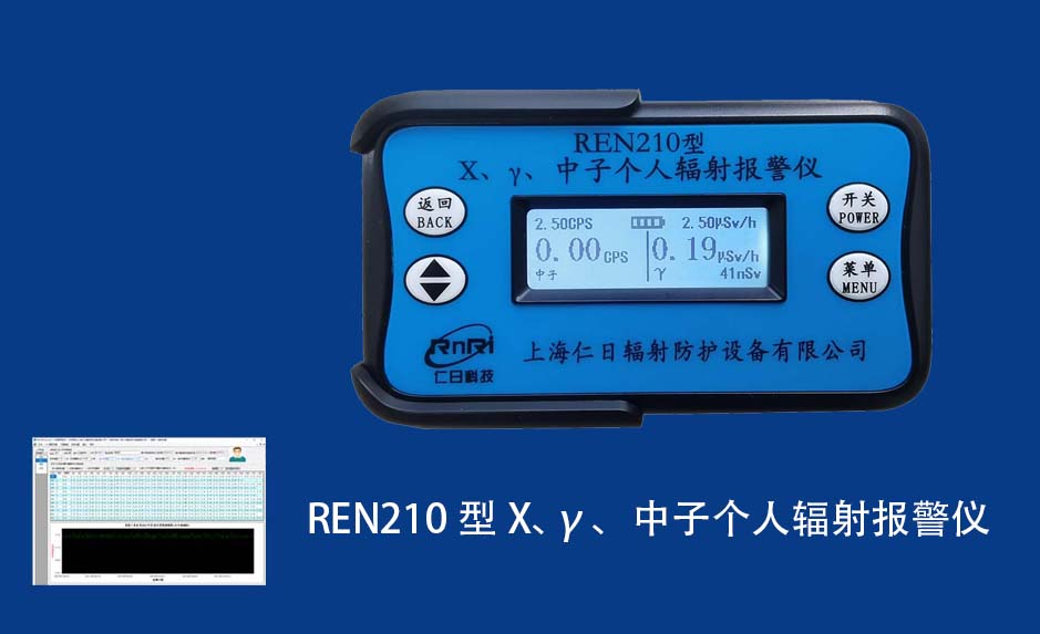 REN210型X、γ、中子個(gè)人輻射報(bào)警儀內(nèi)置SiPM和鋰玻璃晶體組成中子探測(cè)器儀器,采用反照率方式探測(cè)中子射線,同時(shí)也能探測(cè)X、γ射線。因此它可同事監(jiān)檢測(cè)X、γ、中子三種射線。能顯示工作場(chǎng)所的劑量當(dāng)量率和累積劑量,更換電池時(shí),日期及累積數(shù)據(jù)能永久保存。可選配RenRiPersonal個(gè)人劑量管理軟件,該軟件可存儲(chǔ)多個(gè)人的歷史數(shù)據(jù),能記錄日累積、月累積、年累積、輻照時(shí)長(zhǎng)、計(jì)算平均劑量率、扣除或不扣除本底輻射,且以文字和圖譜的方式展現(xiàn)數(shù)據(jù)。廣泛應(yīng)用于環(huán)保、化工、水泥、煤礦、土木工程、石油、醫(yī)院、疾控、進(jìn)出口商檢、核電、加速器、機(jī)場(chǎng)、中子源庫和其他安檢、邊境控制海關(guān)檢測(cè)等